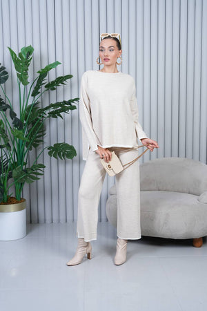 Modest ROSA Knit Two-Piece Set - Cozy Sweater & Wide-Leg Pants