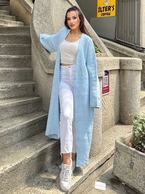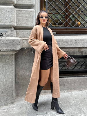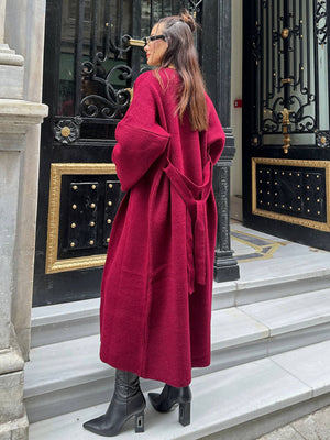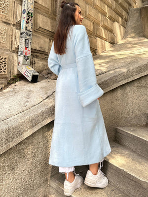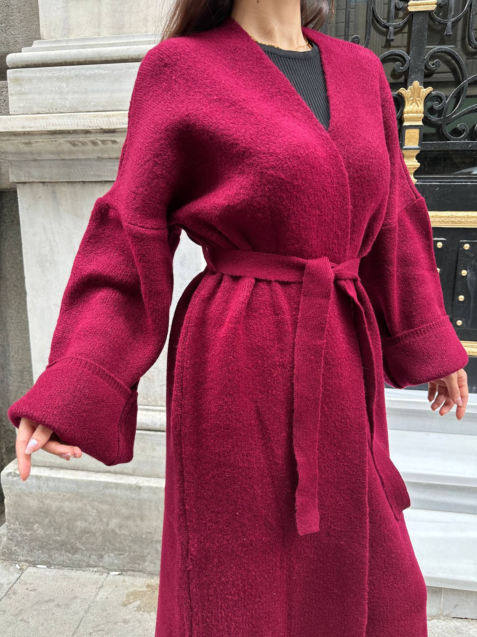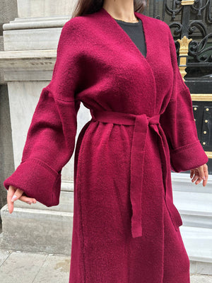 Elevate your modest wardrobe with the Mouna Kimono from Ramodest Canada / USA. This elegant, long-line kimono is a versatile addition to your wardrobe, perfect for layering over any outfit. Crafted from a soft, textured boucle knit fabric, it offers a cozy yet sophisticated feel. The relaxed, oversized fit drapes beautifully, while the wide, full-length sleeves with ribbed cuffs add a touch of modern style. It comes with a detachable self-tie belt to cinch the waist for a more defined silhouette or can be worn open for a casual, flowing look. Available in multiple colours, this kimono transitions effortlessly from day to night. Pair it with a simple top and trousers for a polished look or with a dress and boots for a stylish statement.
